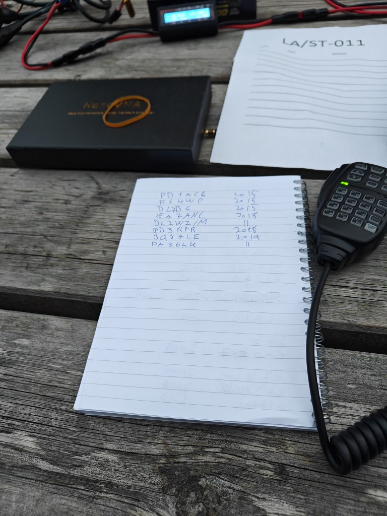 Then we let the action begin, and on the very first CQ call I got a QSO even before I spotted myself on SOTA watch! DJ1HAM was my contact and we had a short but nice QSO on 20m SSB. Then the contacts started pouring in and since I am very new at this I got som help from Stian LB5SH to deciper and note down the call signs. This is definately something I need to work on improving, but it will come with time and practice. After 30 minutes I had 26 QSOs in my log and Stian asked if he could have little go at the radio. Obiviously it would only be a couple of minutes since it started getting dark and we had to return from the summit soon. Obviously.
